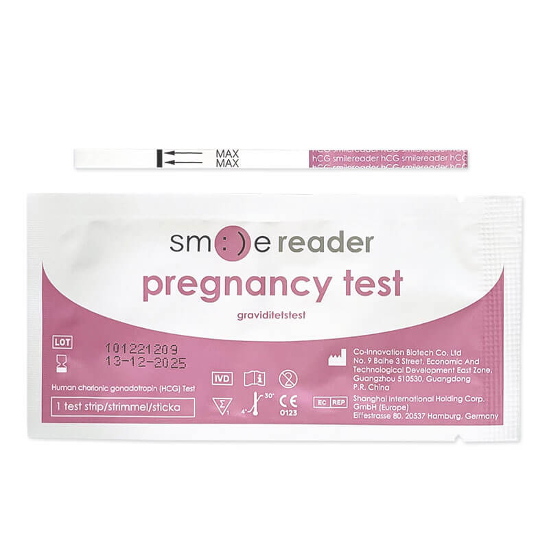 Smile Reader graviditetsteststicka har en extra hög känslighet på 10 mIU/mL, vilket gör det möjligt att upptäcka graviditet tidigare om hCG-nivån är tillräckligt hög. Testet är över 99 % noggrant när det tas från första dagen efter utebliven menstruation.