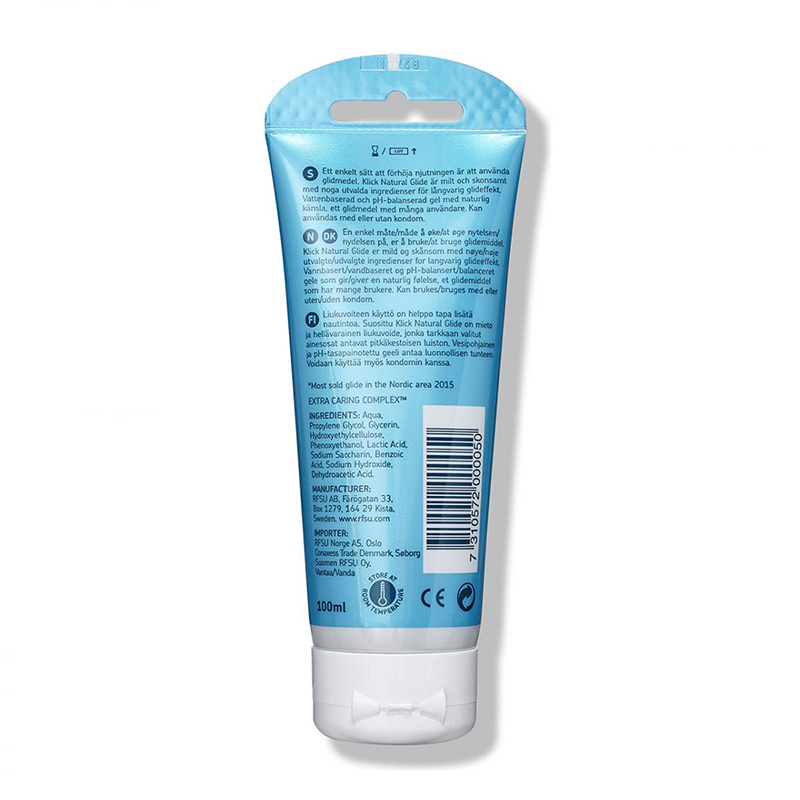 An easy way to enhance pleasure is to use lubricant. Klick Natural Glide is mild and gentle with carefully selected ingredients for long-lasting gliding effect. Water-based and pH-balanced gel with a natural feel, a lubricant with many users. Can be used with or without a condom.