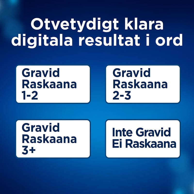 - Clearblue Digital Graviditetstest med Veckoindikator – visar ”Gravid”/”Inte gravid” + veckor sedan befruktning
