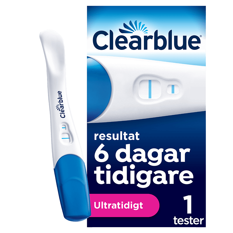 - 1 st Clearblue Ultratidigt Graviditetstest – testa upp till 6 dagar före förväntad mens (10 mIU/mL)