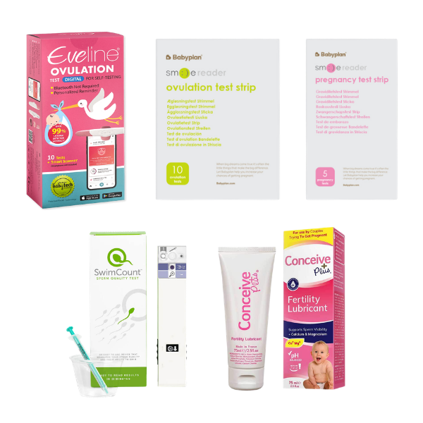 Komplett parkit med Eveline, Smile Reader, SwimCount och Conceive Plus 75ml – dubbel digital ägglossningsspårning, avancerad spermatest och fertilitetsgel för er båda.