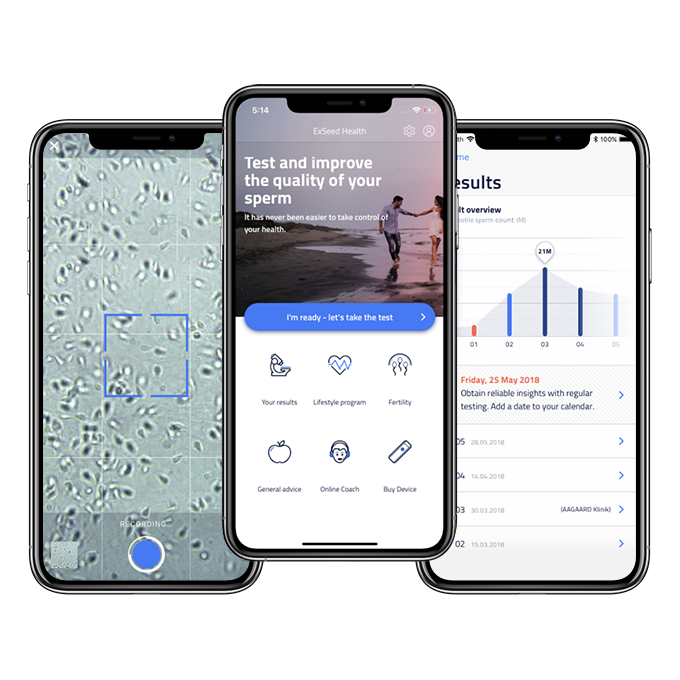 ExSeed räknar och uppskattar kvaliteten på ditt spermaprov, och gör det möjligt för dig att övervaka utvecklingen av din spermiekvalitet över tid via ExSeed-appen.
